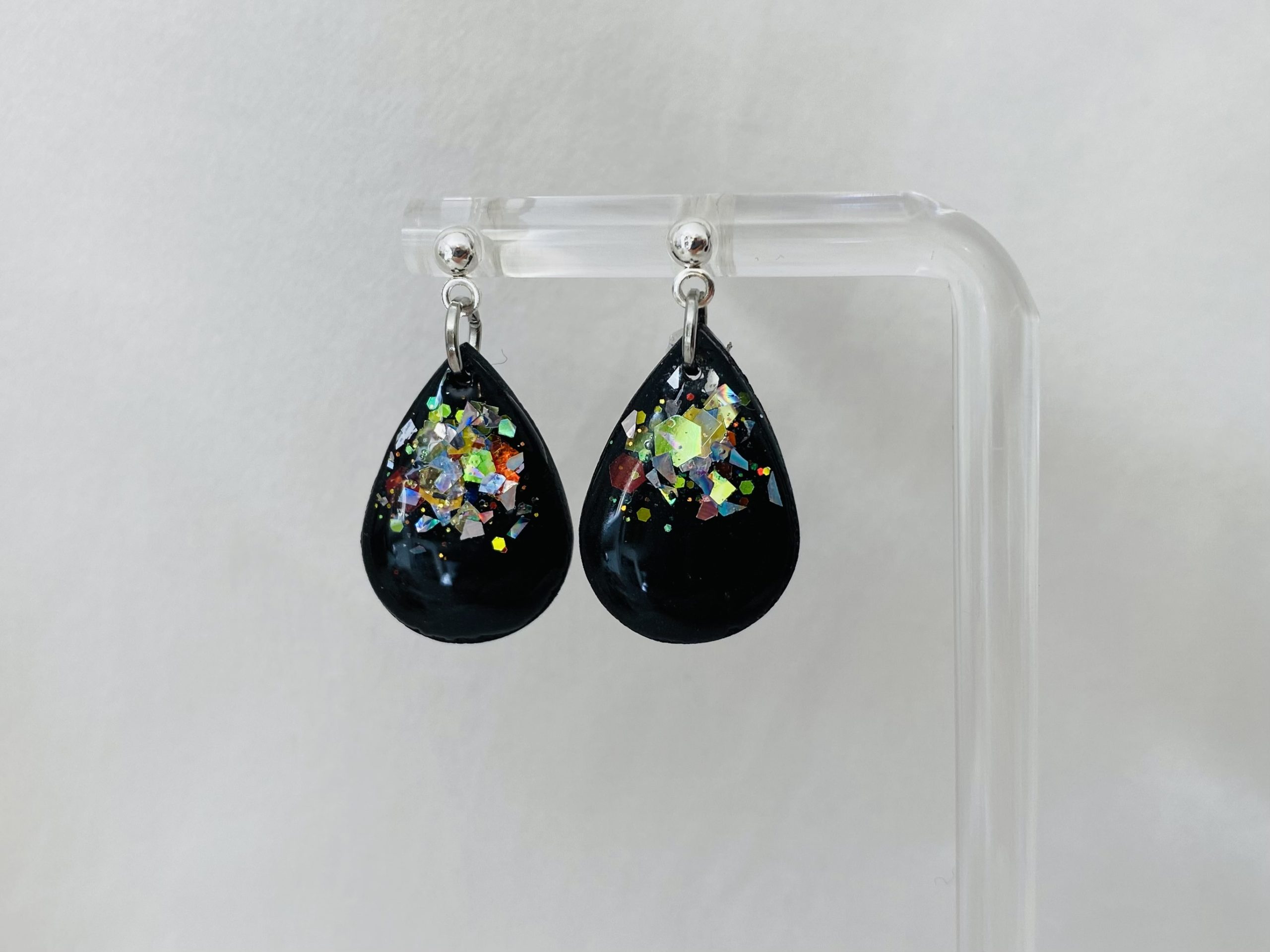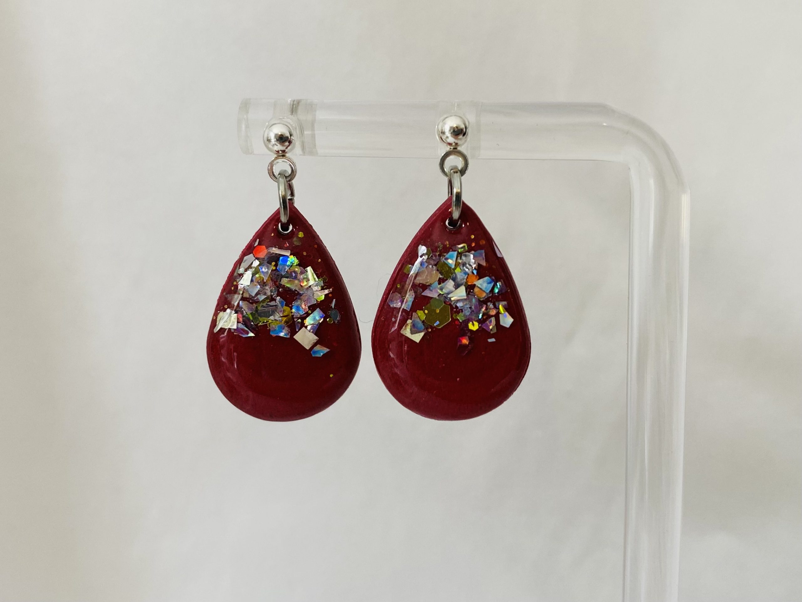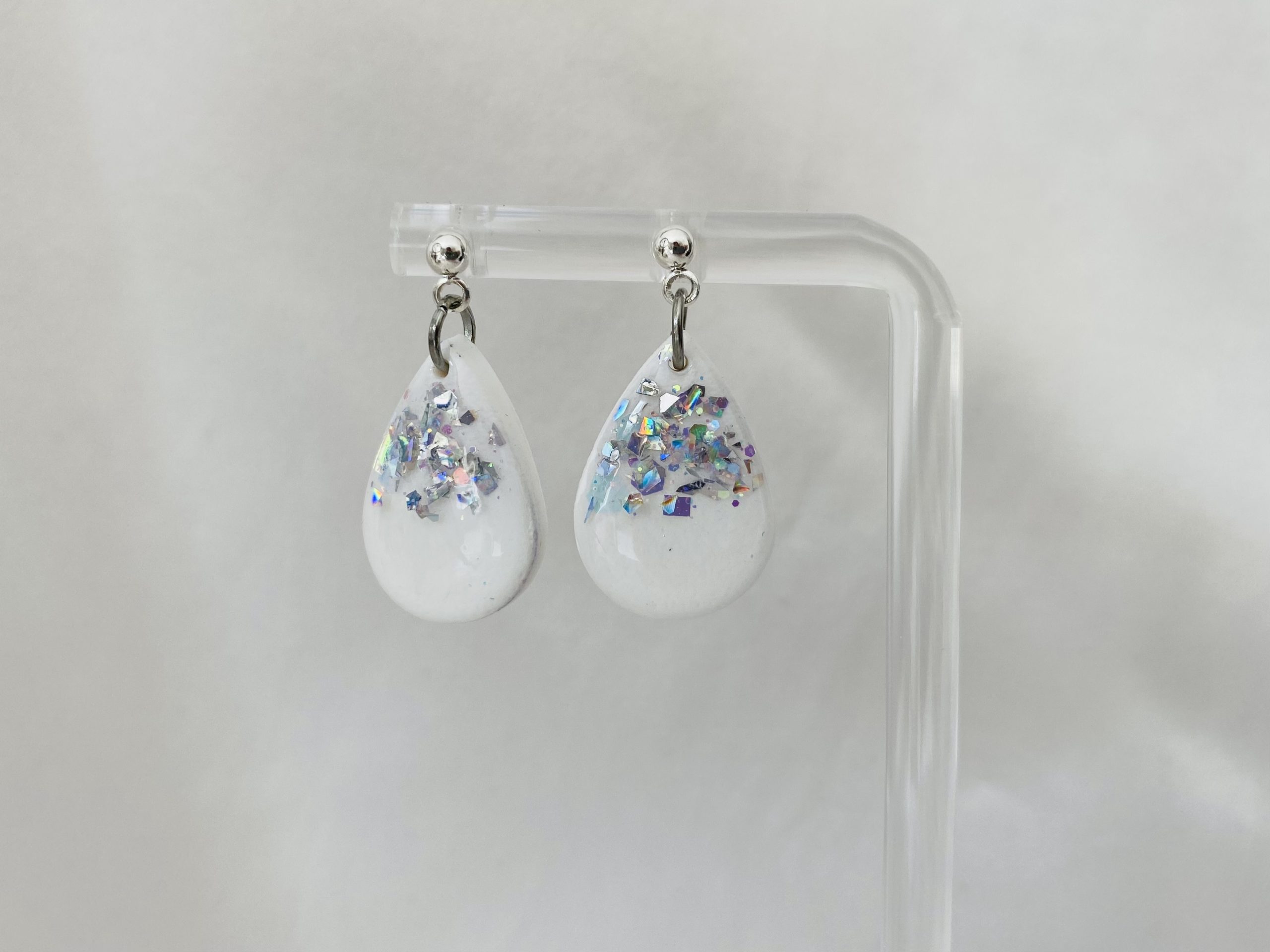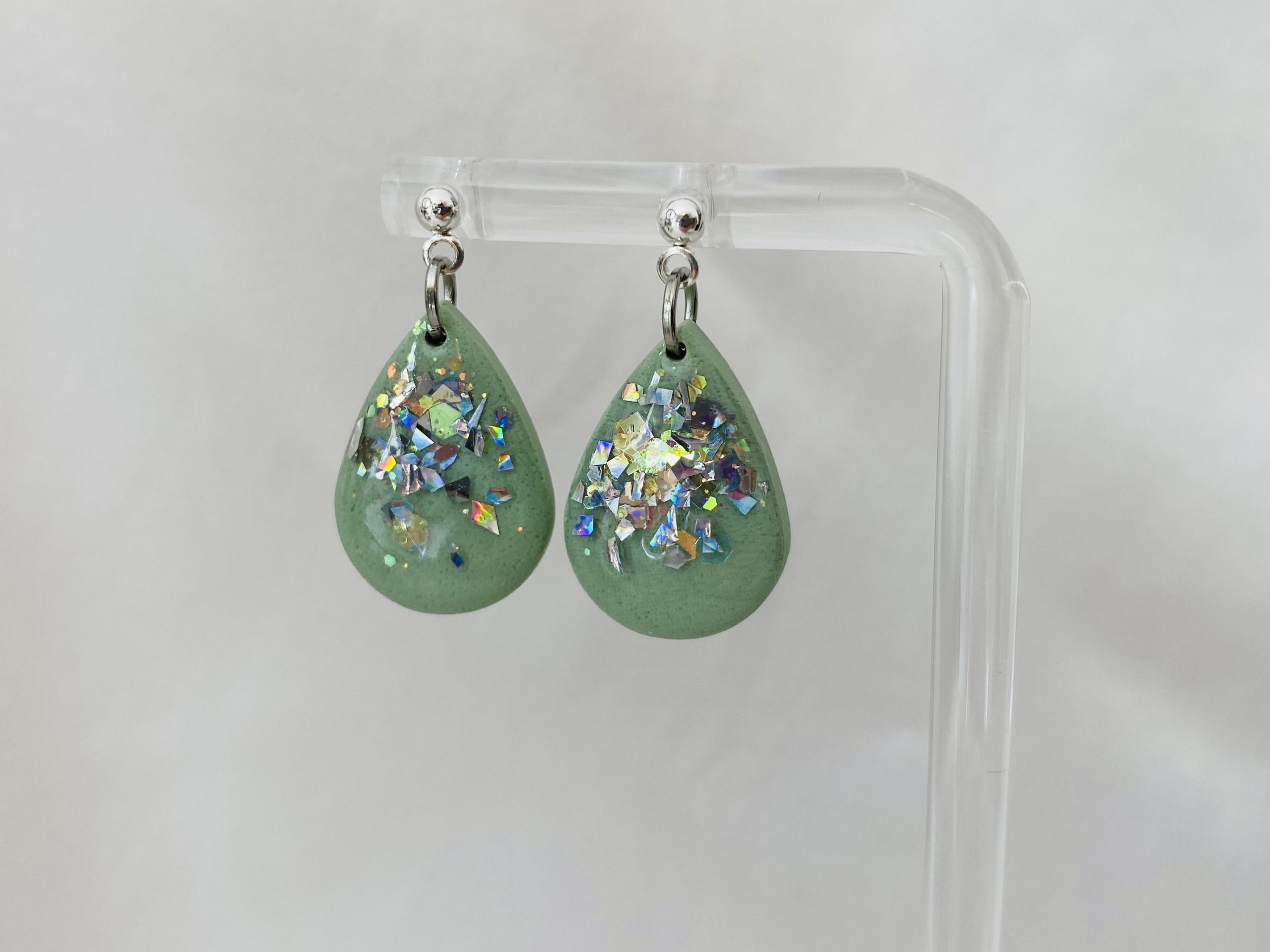 L’ajout de paillettes argentées holographiques ajoute une touche de glamour indéniable à cette paire de boucles d’oreilles. Ces paillettes créent un éclat scintillant qui attire l’attention, tandis que la forme de goutte reste élégante et simple.