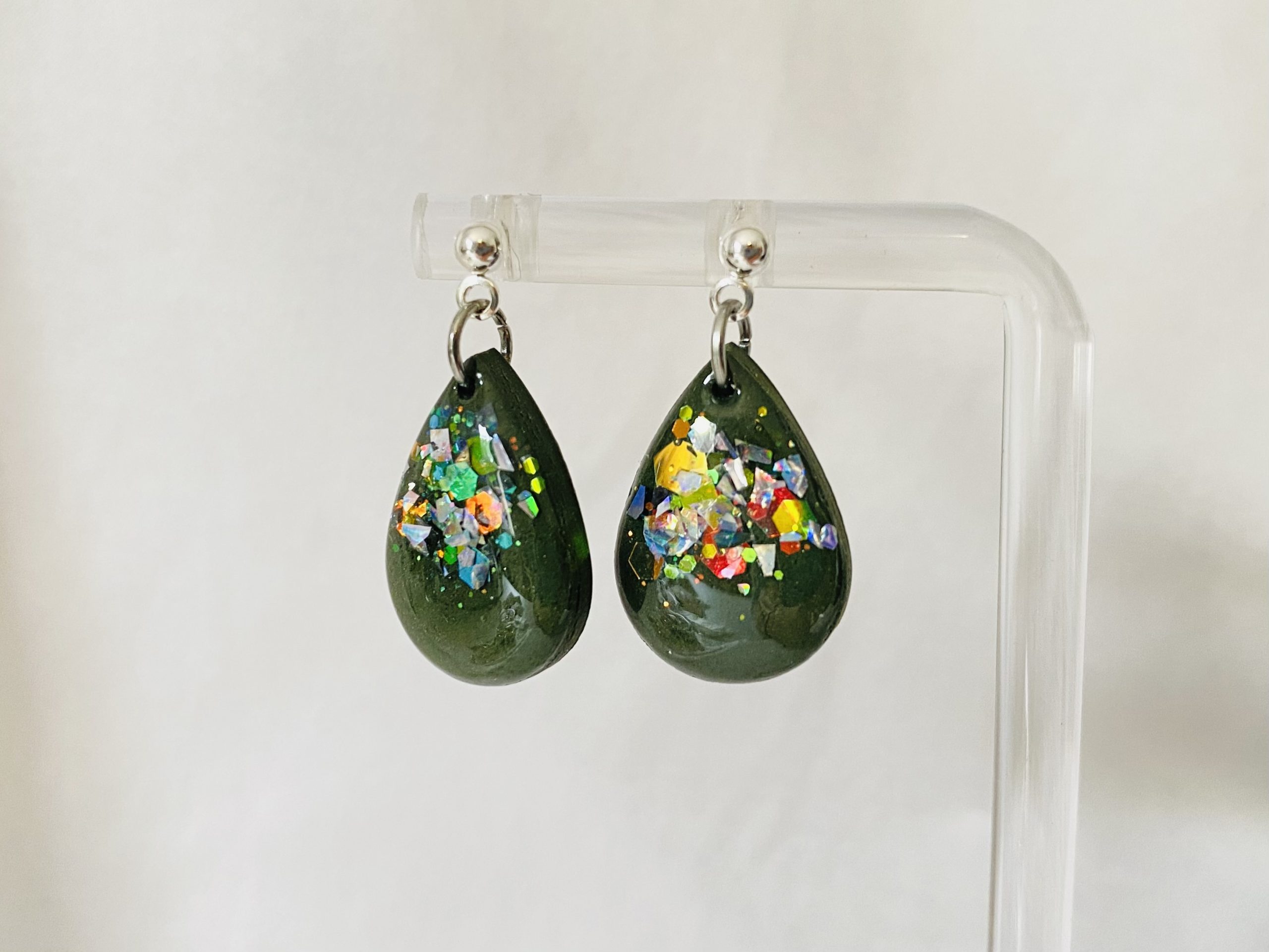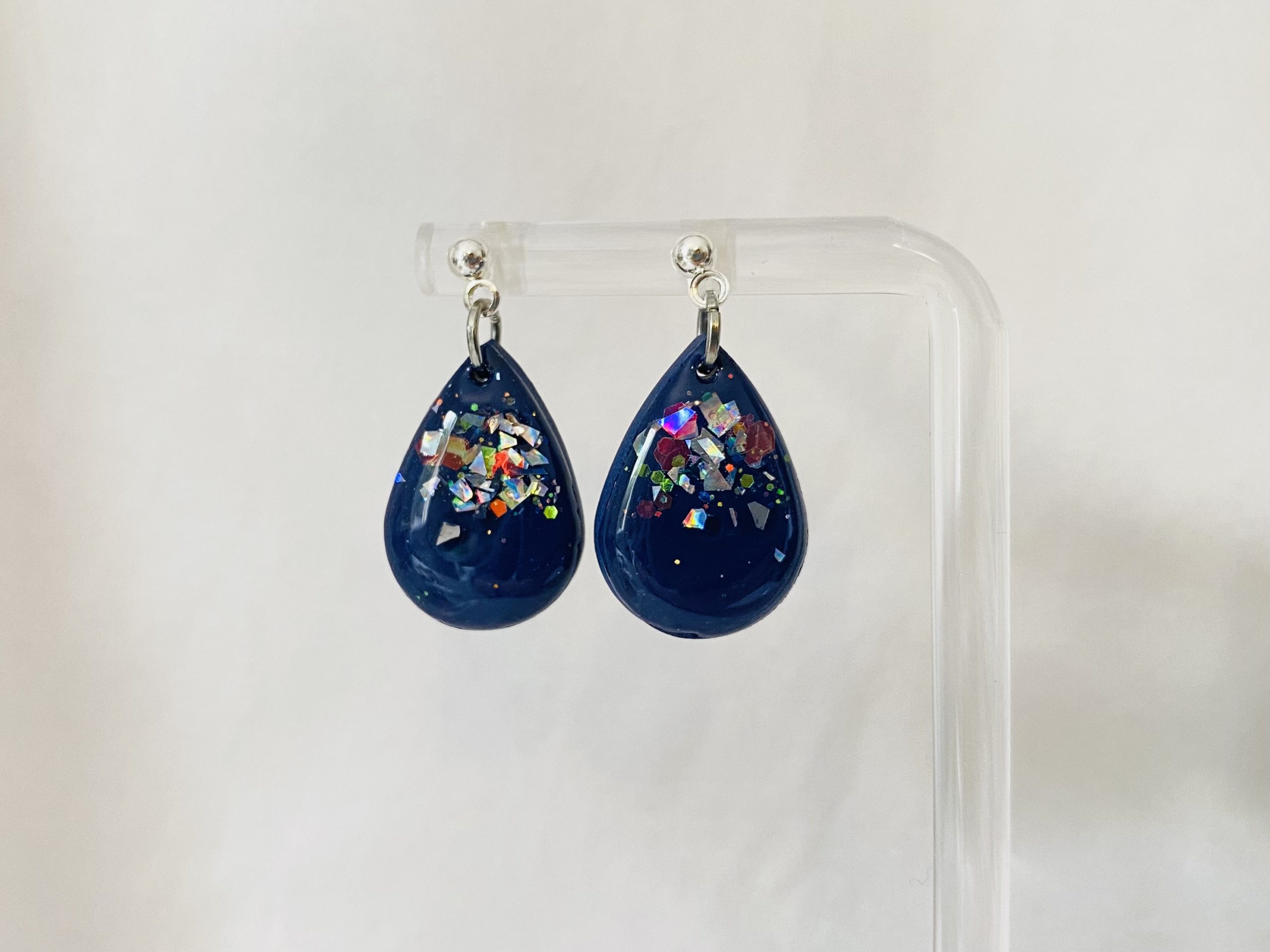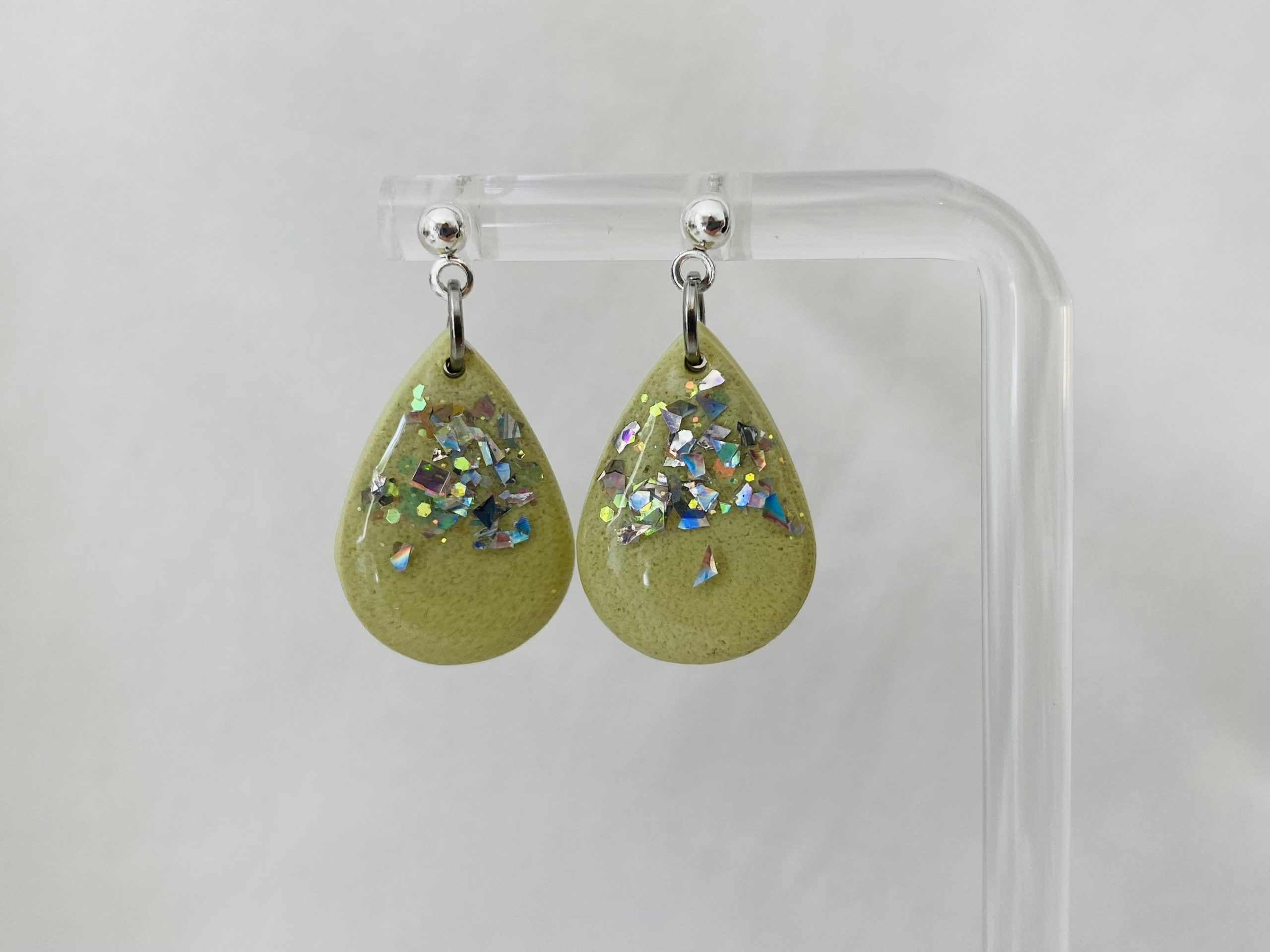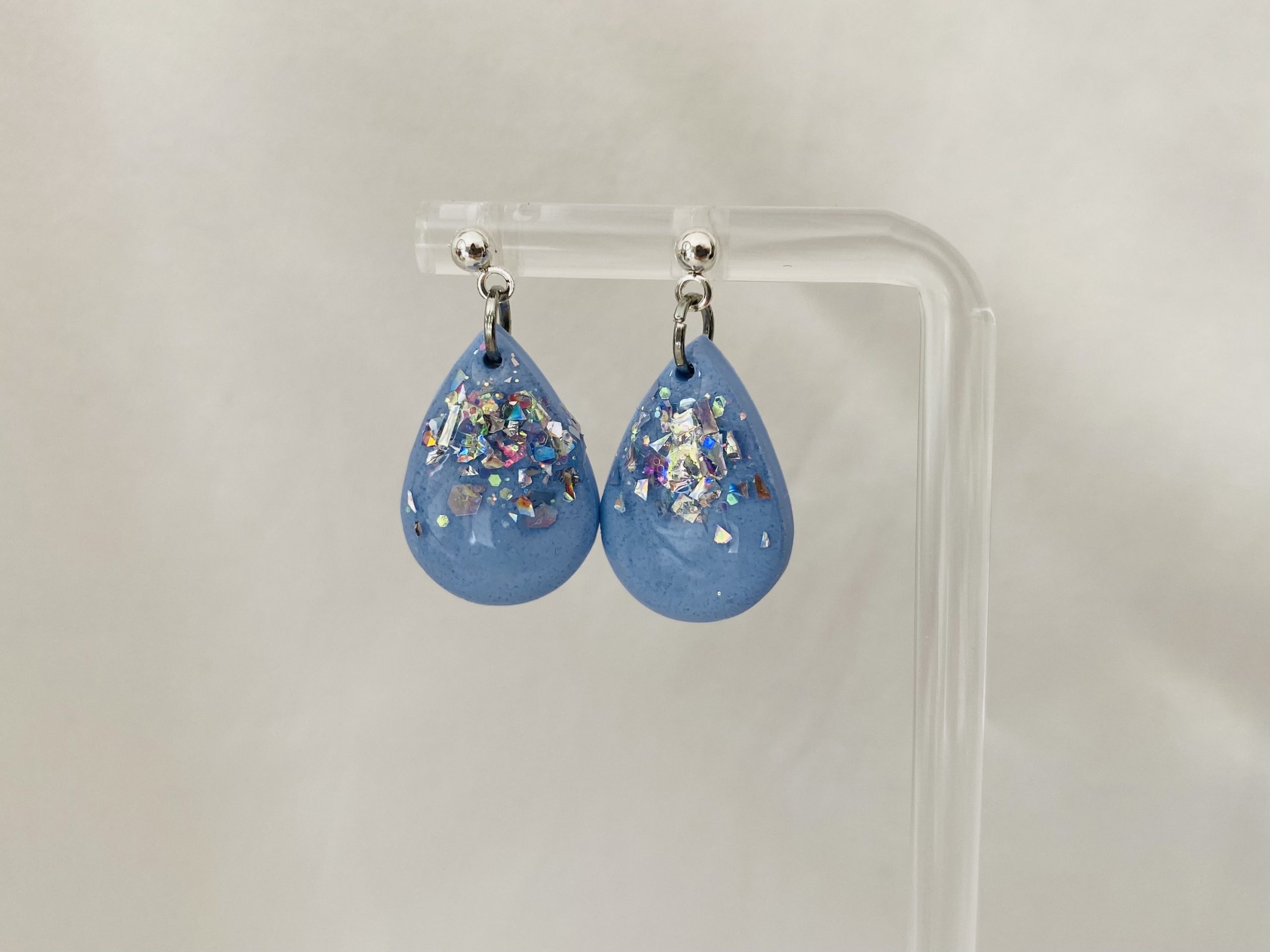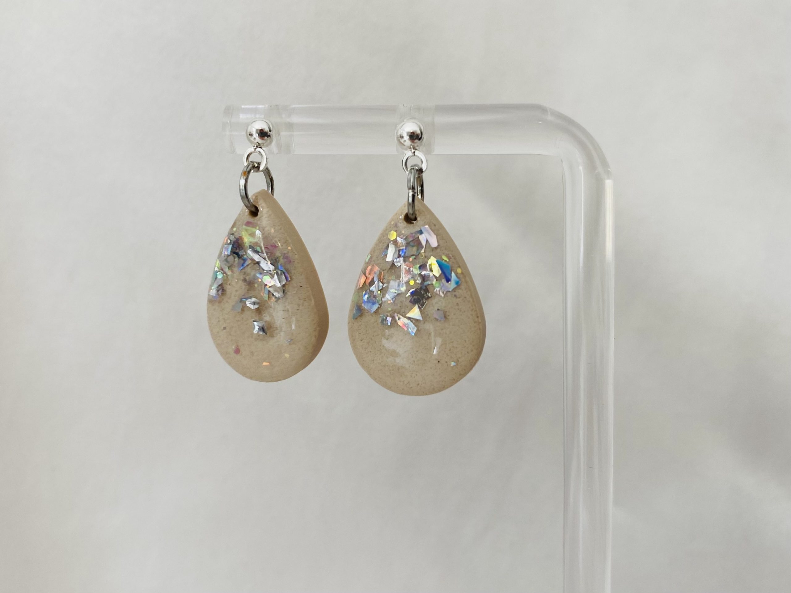 L’ajout de paillettes argentées holographiques ajoute une touche de glamour indéniable à cette paire de boucles d’oreilles. Ces paillettes créent un éclat scintillant qui attire l’attention, tandis que la forme de goutte reste élégante et simple.