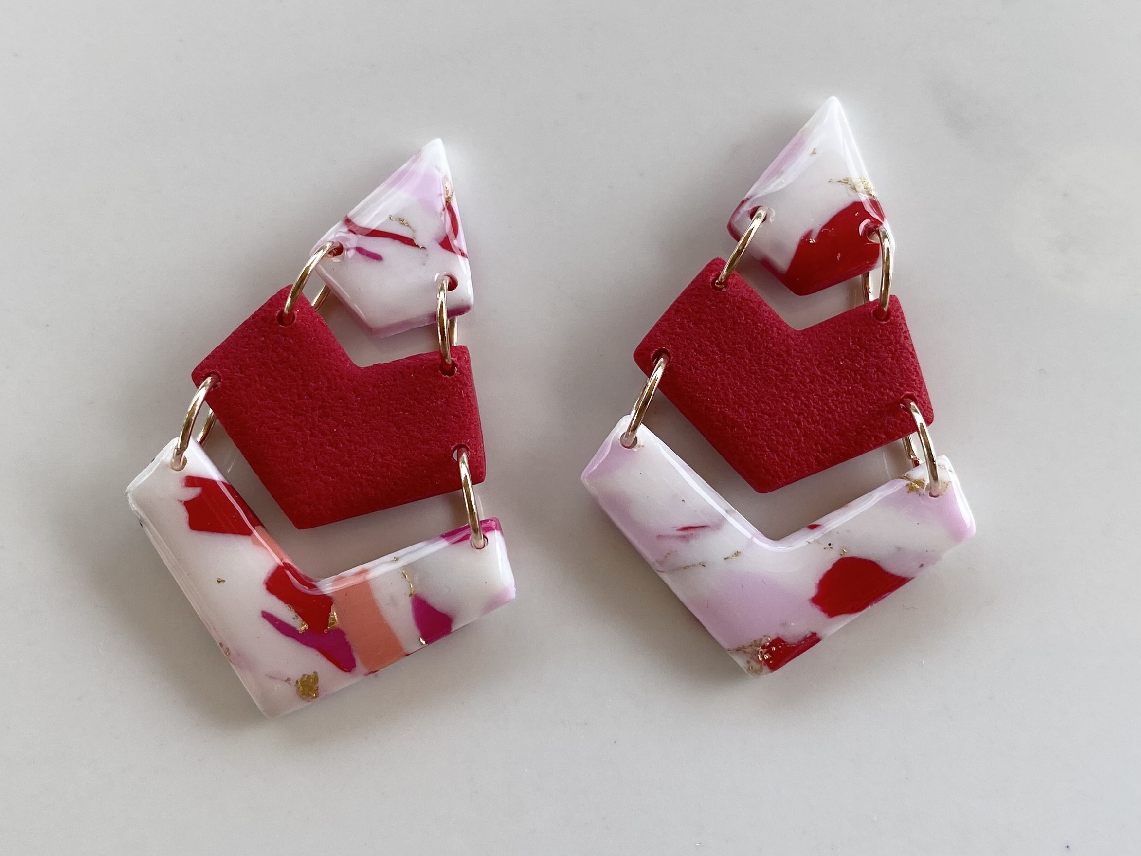 Boucles d’oreilles pendantes fermoir clou, en forme de flèche, rouge, blanc, orange et rose.