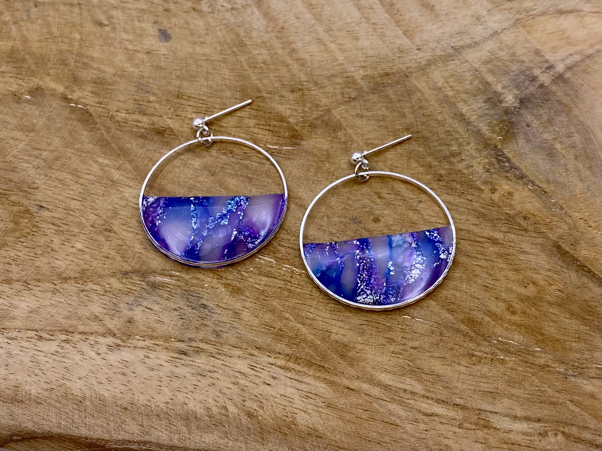 Boucles d’oreilles pendantes demi cercles : 3cm x 3,5cm (fermoir inclus)